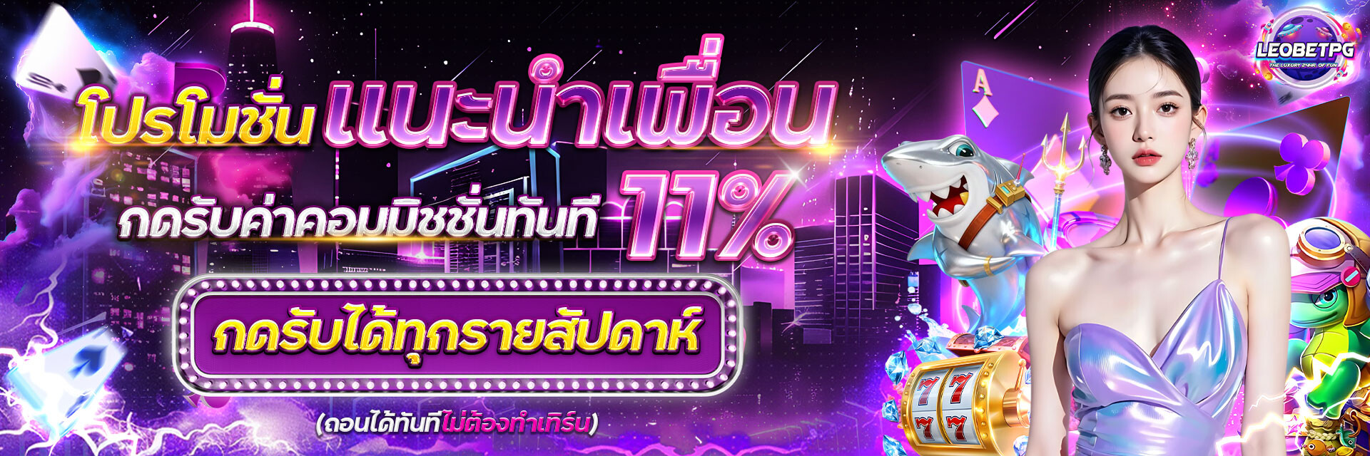 ตอบ : เครดิตฟรี 100% สำหรับการฝากครั้งแรก โบนัสคืนยอดเสีย 10% ทุกสัปดาห์ และแนะนำเพื่อนรับค่าคอมมิชชั่น 0.5%